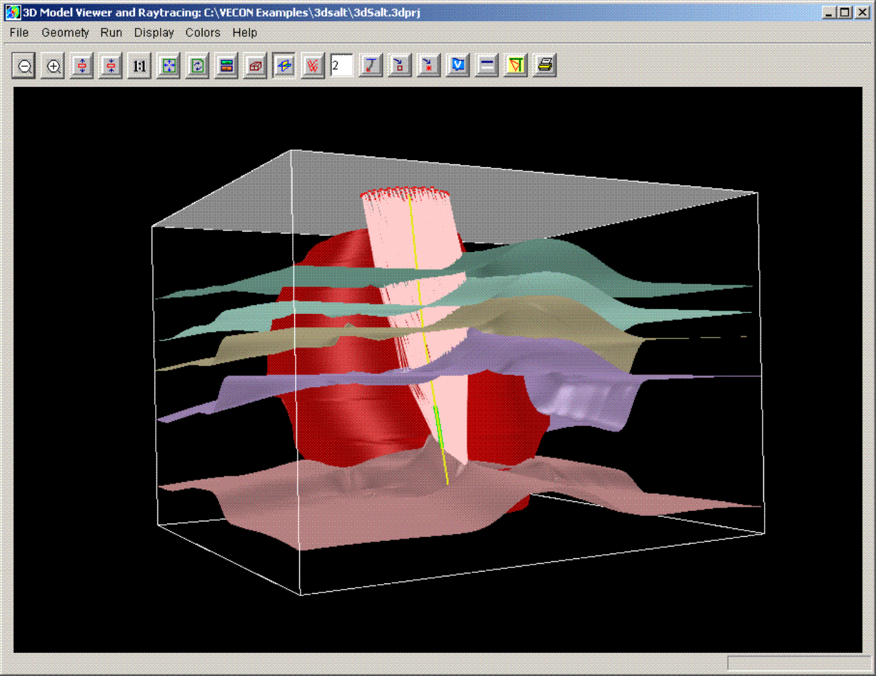 VECON provides options for building 3D velocity models from 2D cross-sections, from the layer or object interface maps supplied by the clients, or digitizing contours on the plan view. The user can import a 2D project directly into a 3D project, or convert a cross-section from a 3D project to a 2D project. 3D raytracing is designed for direct rays, reflections and converted reflections. Ray coverage and fold plot are provided for survey design analysis. The source and receiver coordinates of your survey design can be exported to a SPS file for fast and easy hand off to the data acquisition team.
